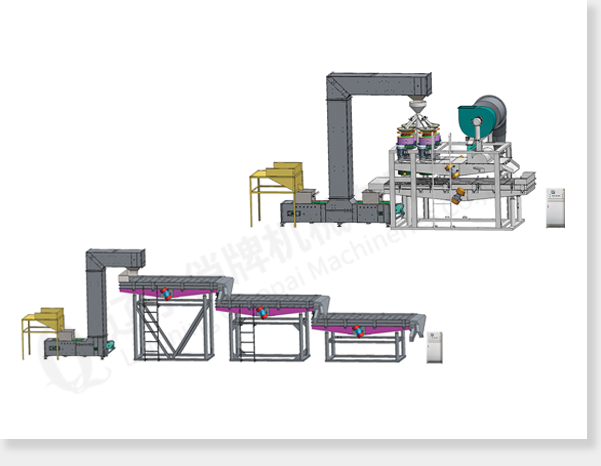 分級(jí)單元:上料斗,提升機(jī)和分級(jí)篩(數(shù)量取決于原料情況)。