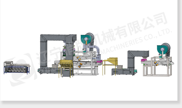 脫殼分選單元:上料斗、Z型斗式提升機(jī)、脫殼機(jī)(一次脫殼)、分選篩、C型斗式提升機(jī)(提升未脫開原料至二次脫殼機(jī))、脫殼機(jī)(二次脫殼)。